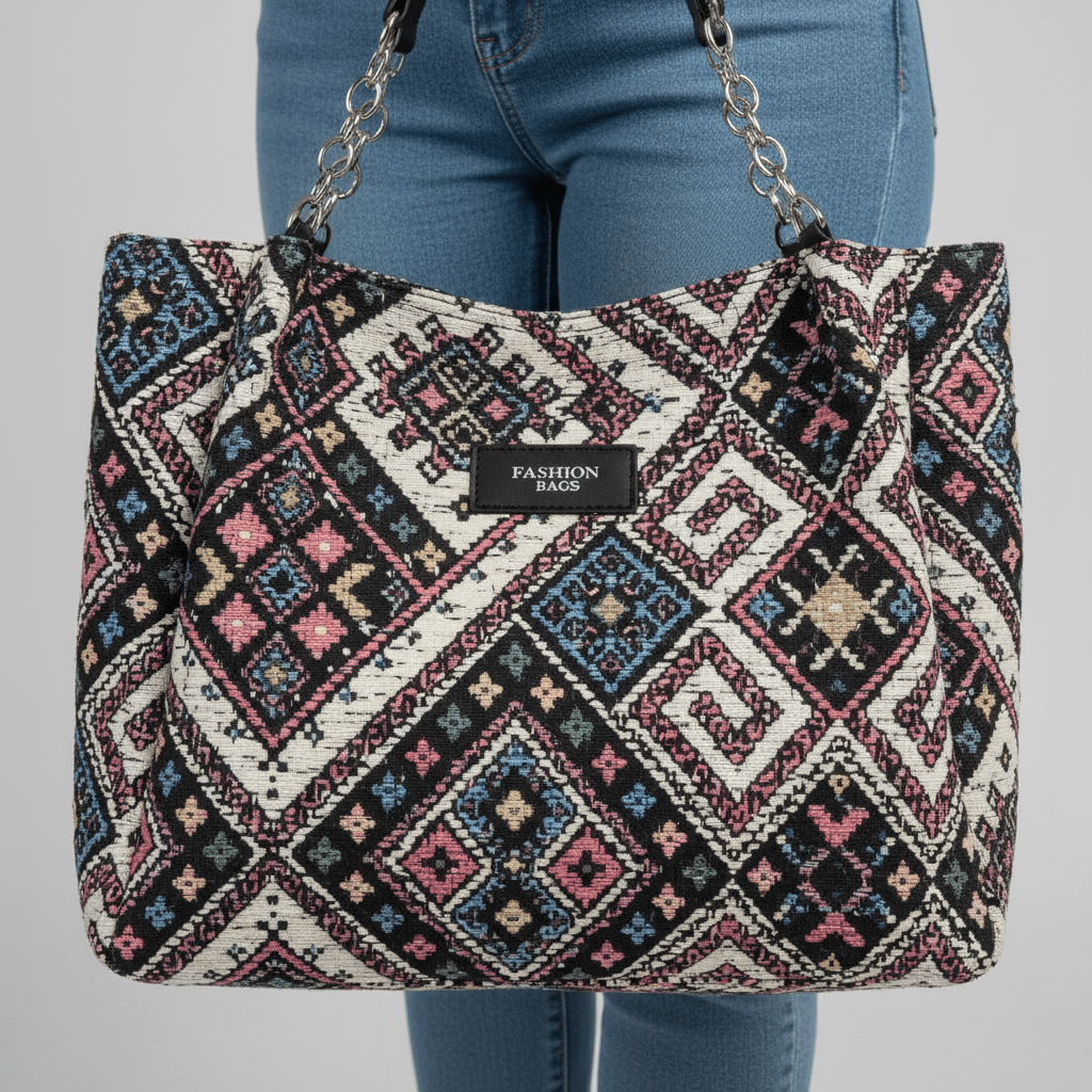 De prachtige geweven texturen en verfijnde patronen geven de tas een authentieke uitstraling, terwijl het ruime interieur en de stevige schouderriem zorgen voor ultiem draagcomfort. Verkrijgbaar in blauw en zwart – zodat je altijd een kleur hebt die past bij jouw persoonlijke stijl.
