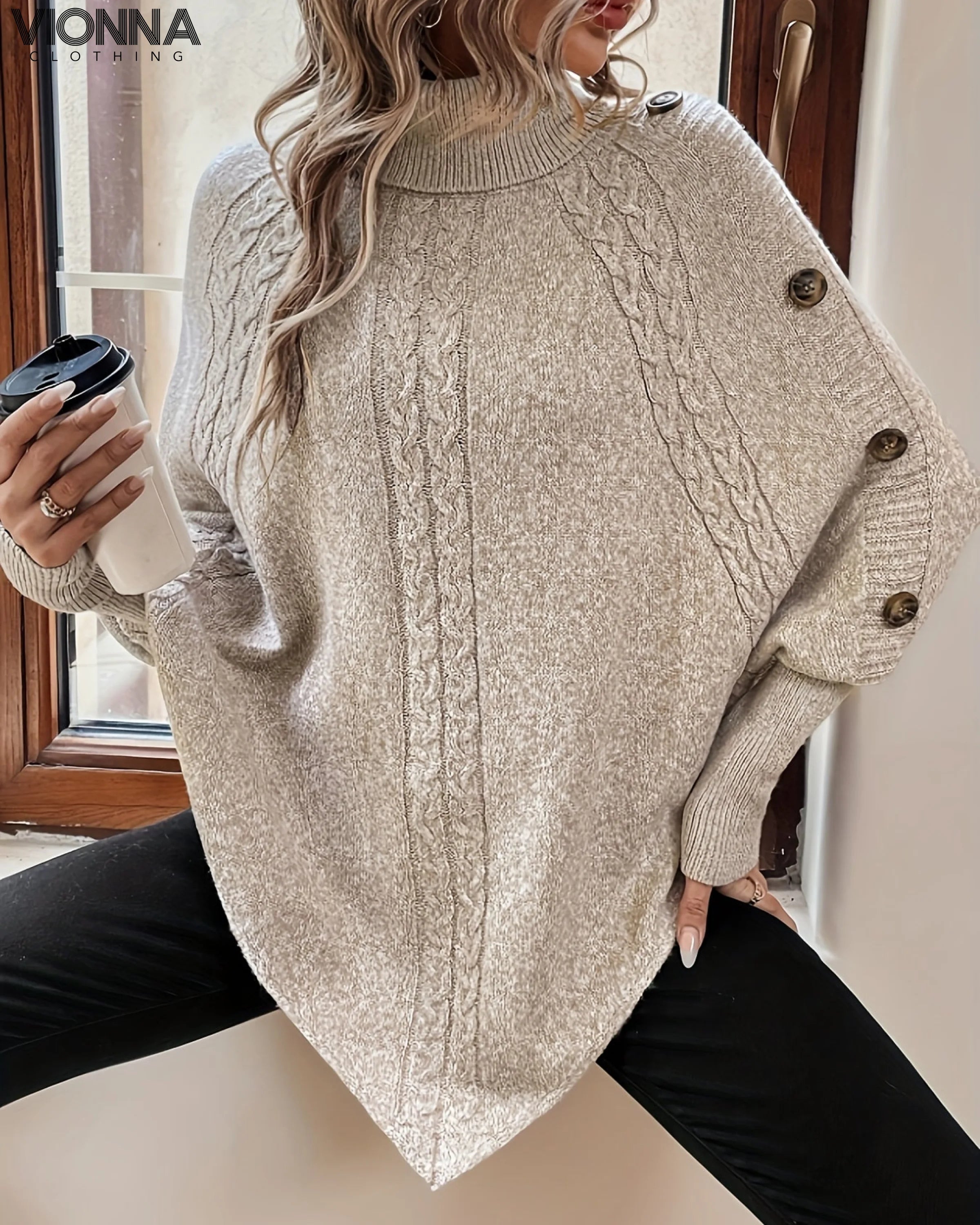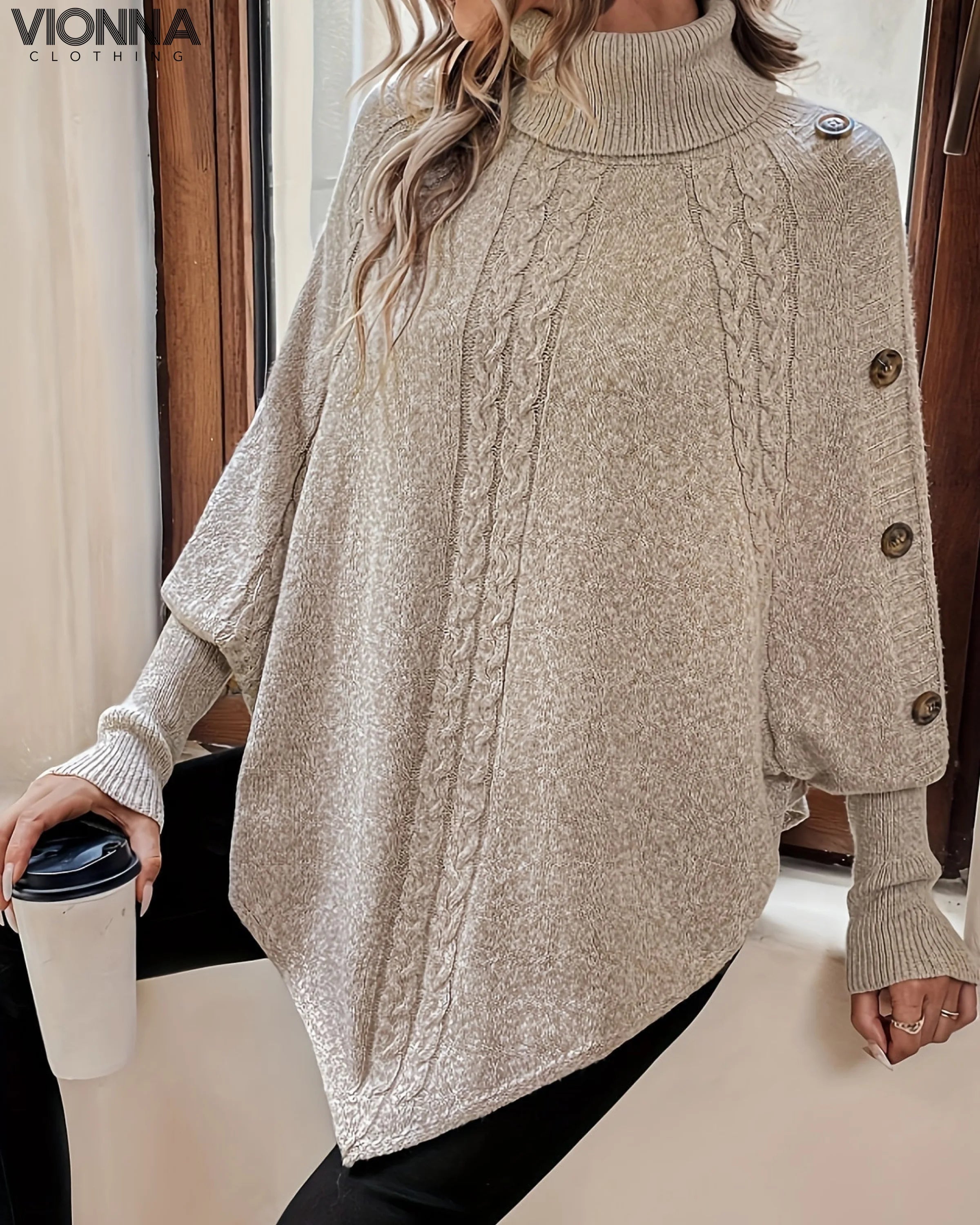 Ontdek tijdloze elegantie en modern comfort met de Cabria™ Kabelgebreide Dames Coltrui met Knopen.