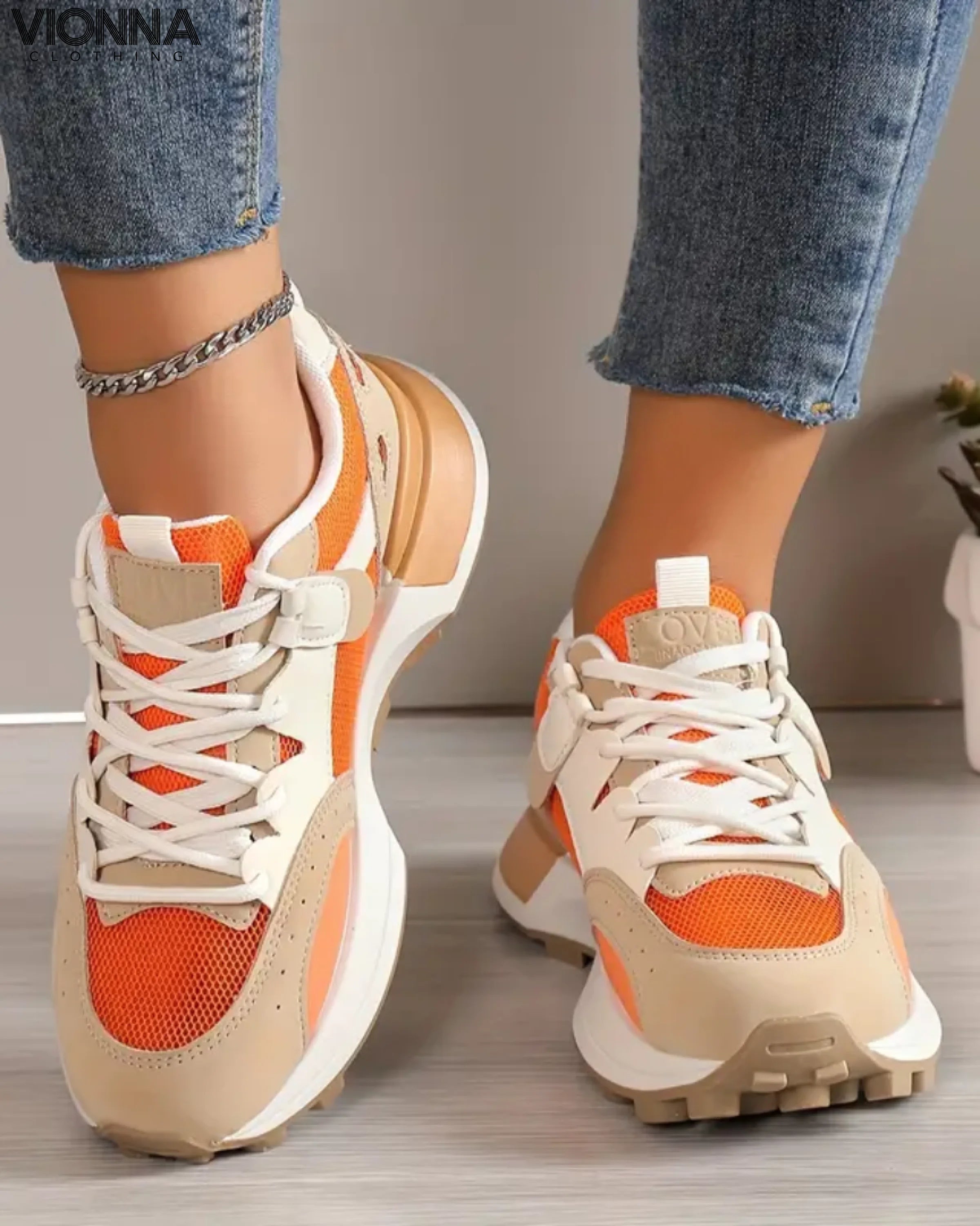 Maak kennis met de Felicia™ Oranje Casual Sneakers – waar mode, comfort en energie samenkomen. Deze sportieve maar stijlvolle sneakers zijn ontworpen voor vrouwen die houden van een frisse en opvallende look, zonder in te leveren op draagcomfort.