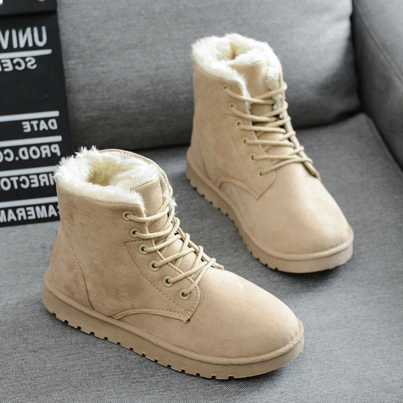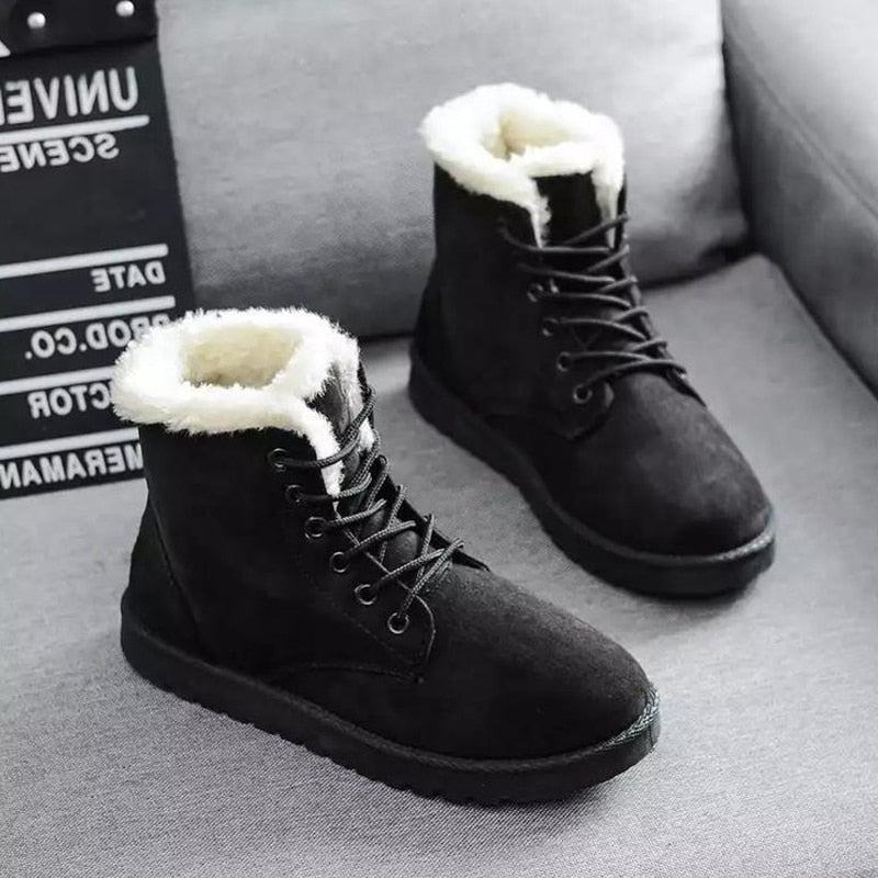 Elke stap voelt als een wandeling in luxe dankzij de korte pluche inlegzool, waardoor elke beweging een plezierige ervaring wordt. Waar wacht je nog op? Omarm de koude dagen met vertrouwen en elegantie, gedreven door het warme comfort van onze Bont-Gevoerde Laarzen.
