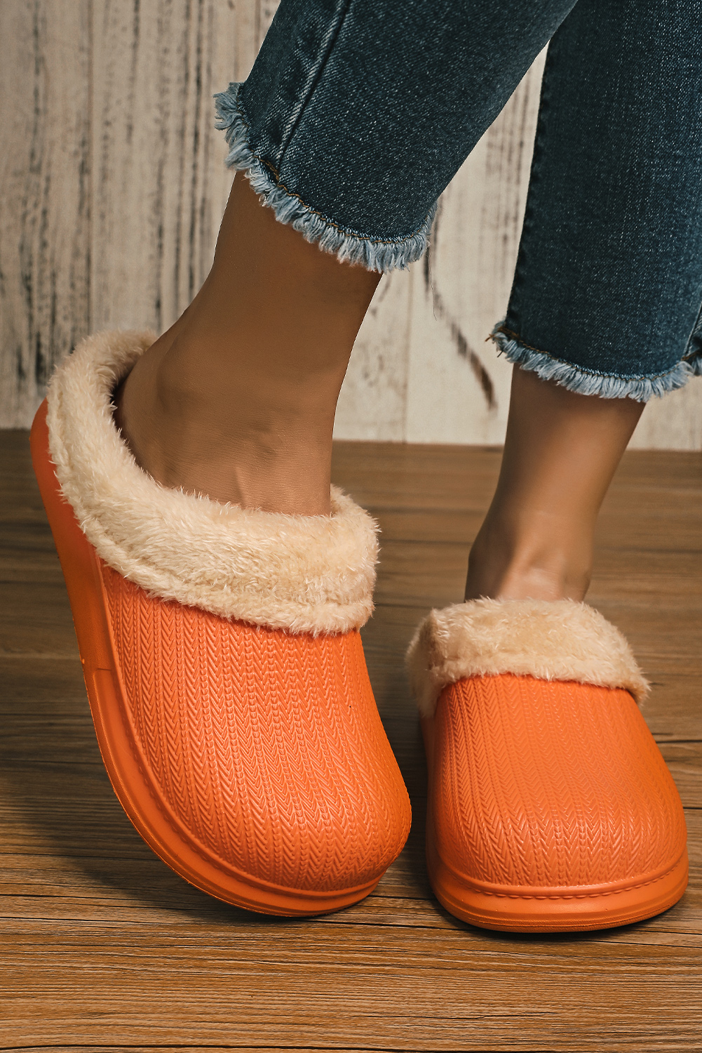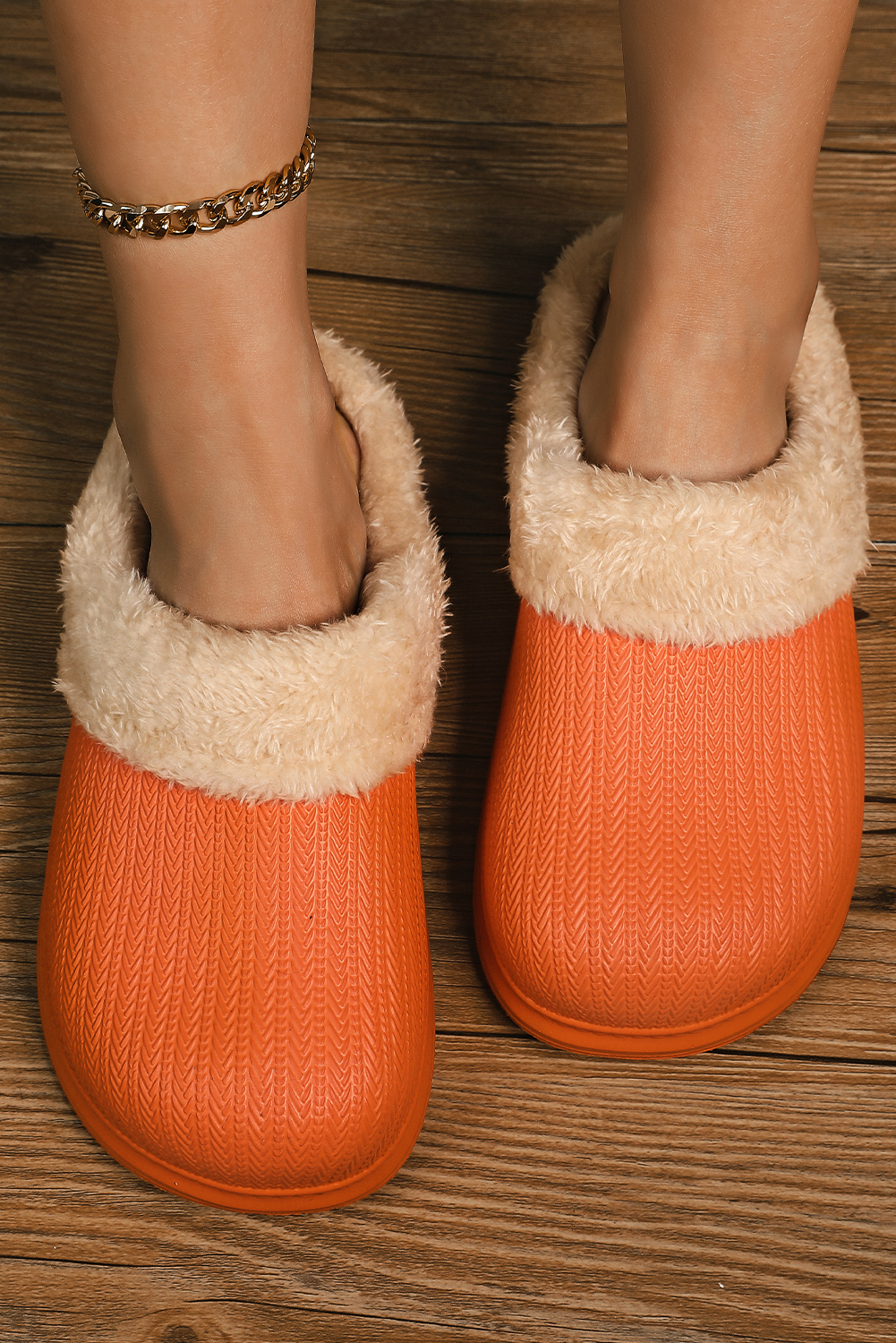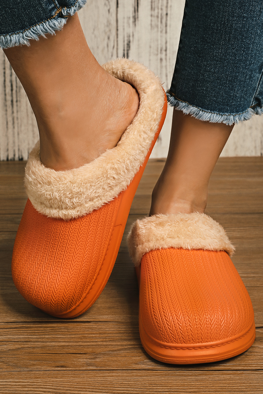 | Model | Oranje Furry Trim Lounge Slippers |